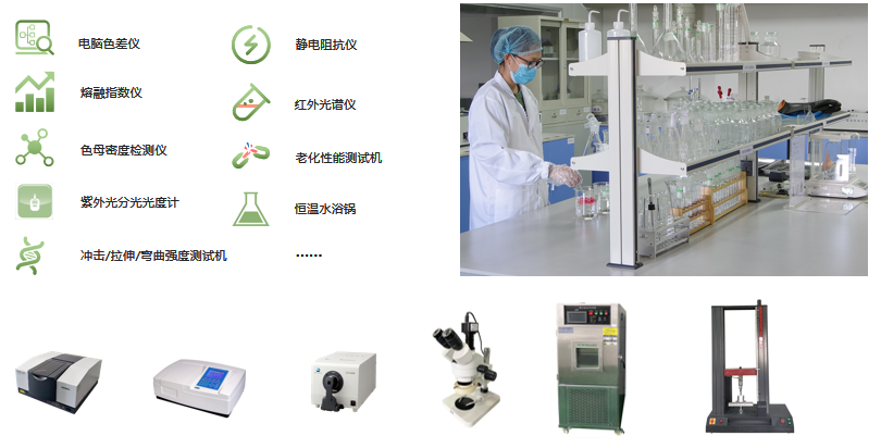 實(shí)驗(yàn)室配備各種高精尖設(shè)備,遵循國(guó)家就食品/藥品/日化用品等直接接觸材料的不同安全標(biāo)準(zhǔn)要求,對(duì)色母進(jìn)行各項(xiàng)物理性能檢測(cè)。
